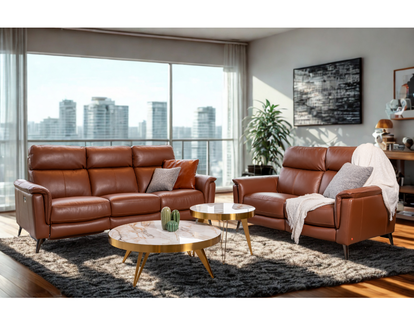 Luca 3-Seater & 2-Seater Half Leather Recliner Sofa (Brandy, Brown)